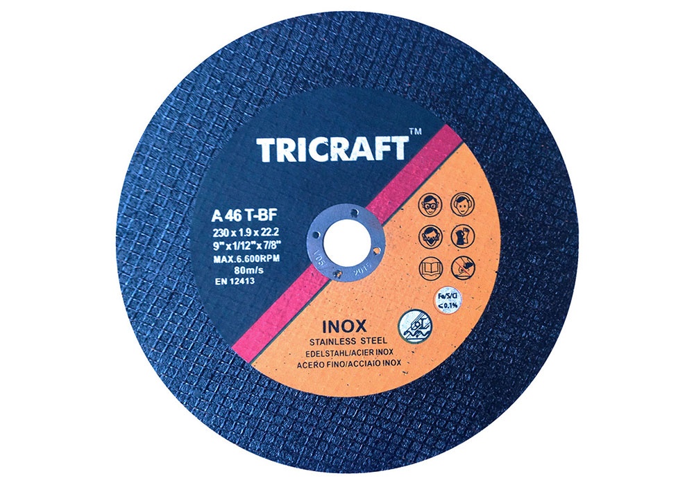 Tricraft Ultra Thin Cutting Wheel & Discs for Inox and Stainless Steel , Type 1 and Type 27 ,fastest cutting, longest lasting thin wheels.Iron, sulfur and chlorine < 0.1% .